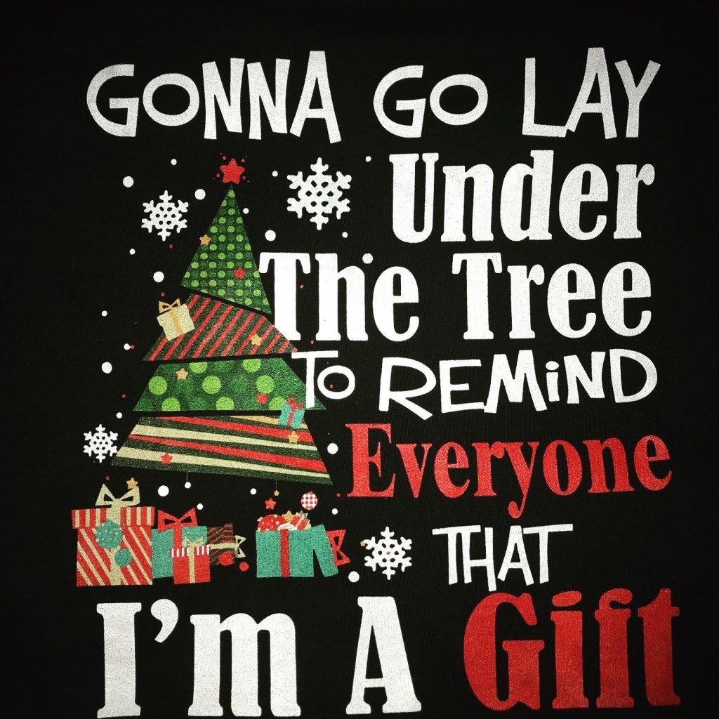 Day 4: my shirt today say, “I’m going to lay under the Christmas tree to remind everyone that I am a gift.”  The truth is that sometimes I forget that I’m a gift so I don’t require that other people treat like I am.
