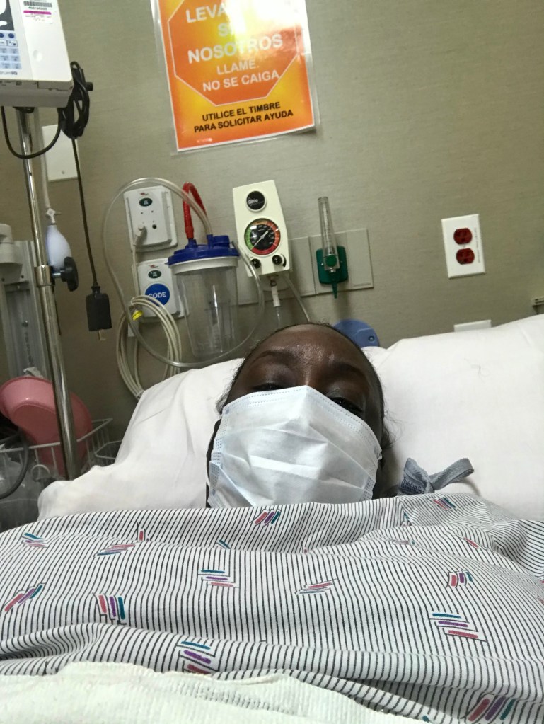 This stayed on my mind until I was ass up on an operating room table with three strange men. My head went in the cage, my arms were strapped down and the poking began. The local anesthesia didn’t work at first so it was repeated. . I got through the burning, tingling and poking by praying my mom was watching over me.
