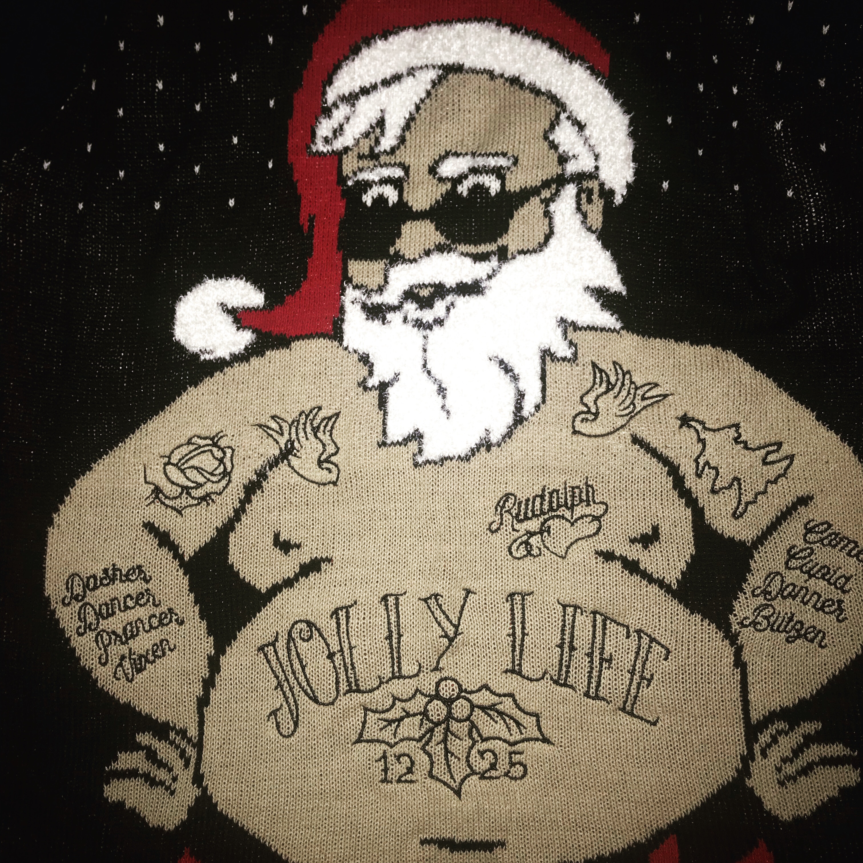 On a clear Saturday, my roommate at the time and I drove to one of the oldest tattoo shops in the little Italy section of Providence, RI. We both got inked. I chose a black panther clawing it’s way out of flames because I felt it embodies what I was going through at the time. When I look at the Santa sweater I chose for day 9 of my Christmas countdown, it reminds me of that day.
