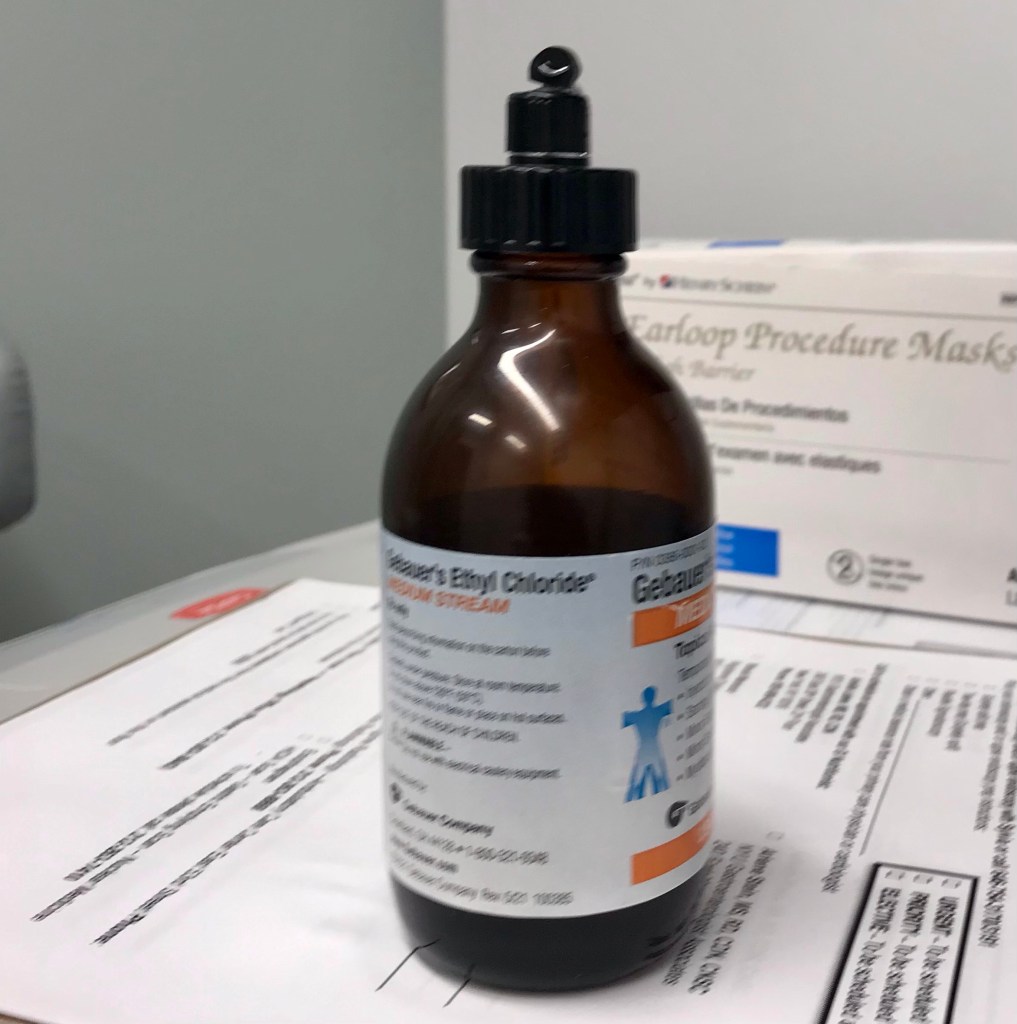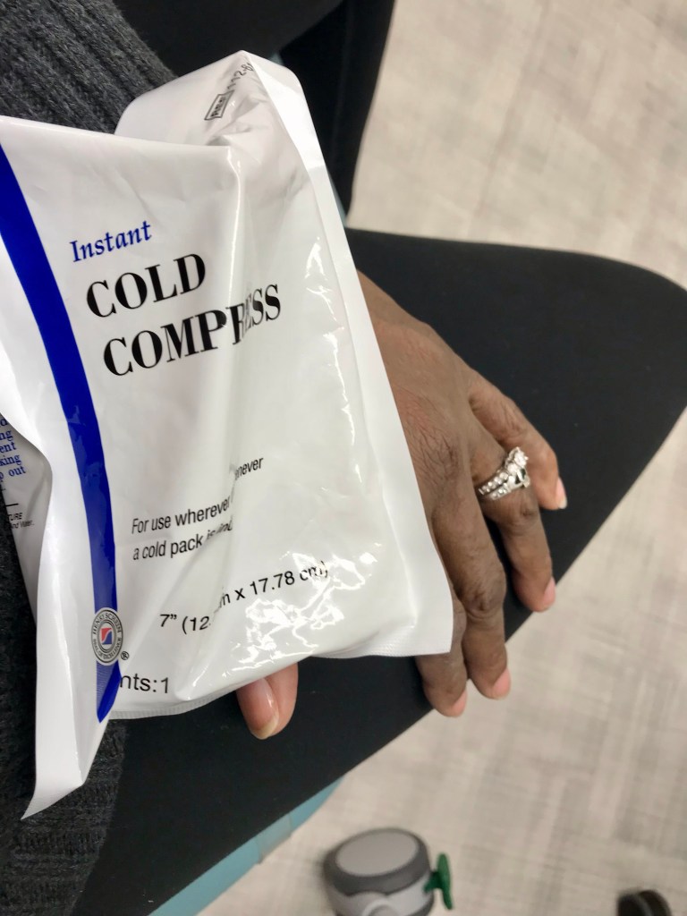A few sharp pricks and it was over. The bleeding puncture wound was covered with a bandage. Then, I was handed another ice pack. I also left with a referral for a hand surgeon, knee surgeon and a podiatrist (an issue my rheumatologist discovered during our visit)