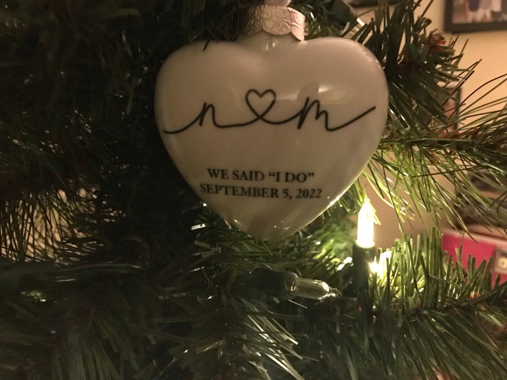 I stared at the twinkling lights on the tree and thought, “I know.” I ran upstairs and grabbed the silver charms of my departed loves on that hung from my bouquet at my wedding in March. I strung them on ribbons. Then, I went on Etsy and ordered custom one of lost loved ones, places that impacted my life and special moments. “I’ll create a memory tree,” I thought.