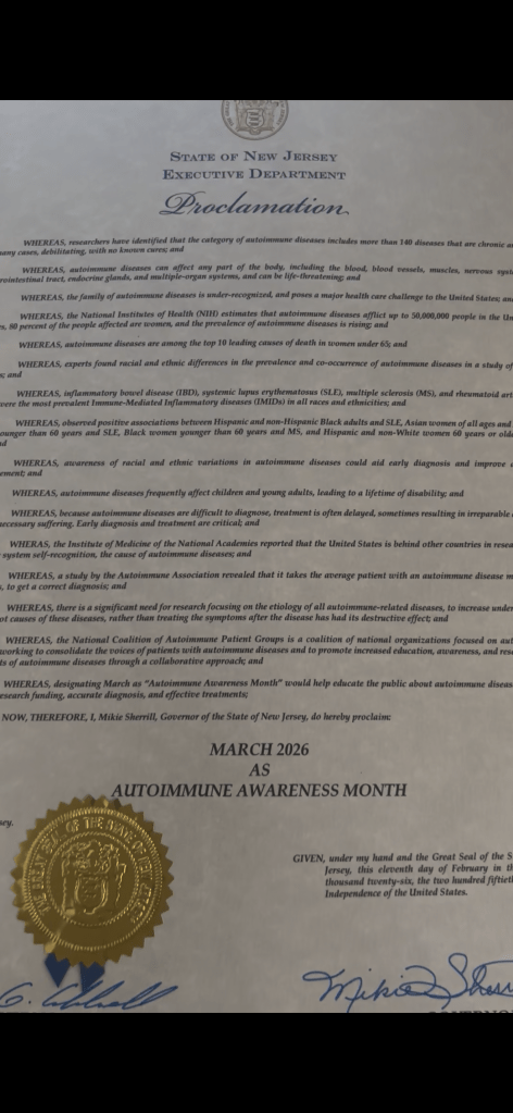 (P.s. before I came to dc I got the governor of New Jersey to issue a proclamation acknowledging autoimmune disease awareness month)